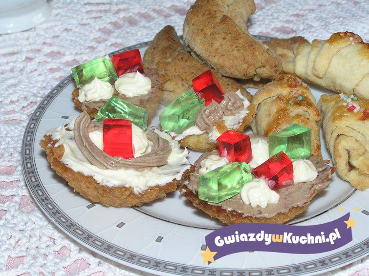 Mąkę posiekać z margaryną i cukrem. Dodać jajko i śmietanę. Wymieszać i schłodzić w lodówce. Po schłodzeniu wałkować ciasto wycinać kółka i wykładać foremki babeczkowe. Piec na złoty kolor w 180 stopniach.
