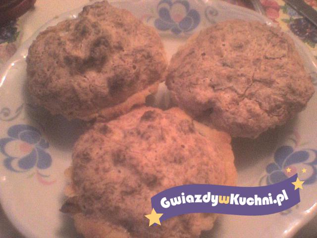 Mąka, margaryna, żółtka, cukier puder i woda- zagnieść wstawić na pół godziny do lodówki. Wylepić ciastem foremki, następnie dodać powidła ,pokrojone orzechy i rodzynki. Ubić białka dodać cukier i kokos przykryć bakalie i piec w temp 160 st. około 20 min.