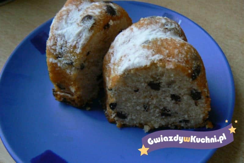 Margarynę utrzeć z cukrem na puszystą masę, dodajemy żółtka i ucieramy do białości. Dodajemy mąkę wymieszaną z proszkiem do pieczenia. Ubitą z białek pianę delikatnie mieszamy z ciastem. Dodajemy rodzynki, mieszamy. Ciasto wykładamy do formy. Pieczemy ok. 40 minut w temperaturze 180 stopni. Wystudzoną babkę posypujemy pudrem lub polewamy polewą.