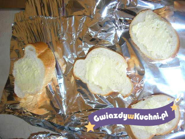 Bagietkę kroimy w 2 – 3 centymetrowe kromki, masło ucieramy z czosnkiem i solą, smarujemy kromki. Każdą kromkę zawijamy oddzielnie w folii aluminiową, wstawiamy do zamrażarki na 2 godziny. Pieczemy w 160 stopniach przez 10 – 15 minut.