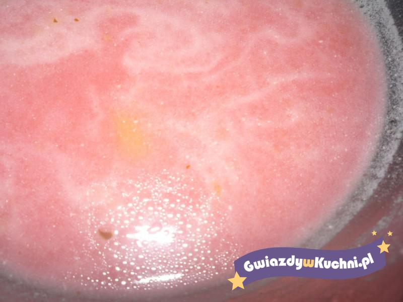 Buraki obra膰, pokroi膰 grubo, da膰 2 艂y偶ki octu, szczypt臋 cukru i soli. Zala膰 wod膮 偶eby przykry艂o i zagotowa膰. Osobno ugotowa膰 wywar. Do garnka wla膰 litr wody. Do tego doda膰 ko艣膰 wieprzow膮, marchewk臋 pokrojon膮 w kostk臋 i cebul臋 pokrojon膮 w kosteczk臋, posoli膰. Gotowa膰 15 minut. Osobno ugotowa膰 ziemniaki w osolonej wodzie. Do ugotowanego wywaru z ko艣ci wla膰 barszcz z burak贸w (buraki wyrzuci膰) zatrzepa膰 艣mietan膮 i przyprawi膰. Ziemniaki zalewa膰 barszczem.