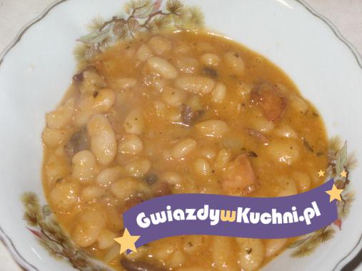 Białą fasolę moczyć przez dobę w zimnej wodzie, następnie zagotować, odlać wodę, po czym zalać wrzątkiem i ugotować na półmiękko. Na 15 minut przed zakończeniem gotowania dodać pokrojone: marchew, czosnek, seler i pietruszkę oraz sól, olej i pastę pomidorową (wszystko bez uprzedniego obsmażania).