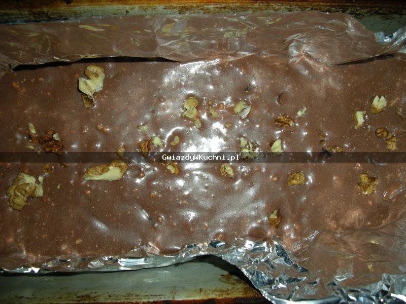 Wodę podgrzać, roztopić margarynę, dodać cukier, cukier waniliowy i kakao. Gdy ostygnie powoli dodawać mleko w proszku, cały czas mieszając. Herbatniki połamać na drobne kawałki i połączyć z masą. Na końcu dodać bakalie. Podłużną formę wyłożyć folią ,przełożyć masę i ucisnąć. Odstawić do zastygnięcia. Najlepiej smakuje na drugi dzień.
