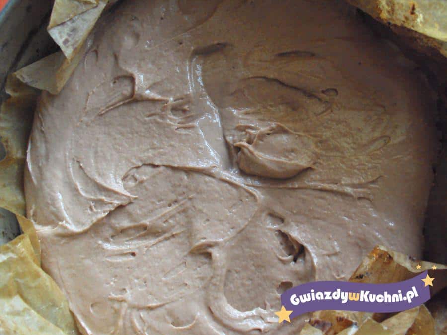 Wszystkie składniki na ciasto należy włożyć do miski i dokładnie ze sobą wymieszać. Gdy uzyskana zostanie gładka masa należy wylać ciasto do wysmarowanej tłuszczem i wysypanej mąką blaszki i piec w nagrzanym do 200 stopni piekarniku przez około 40- 45 minut.