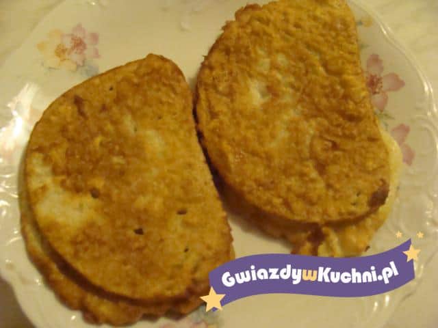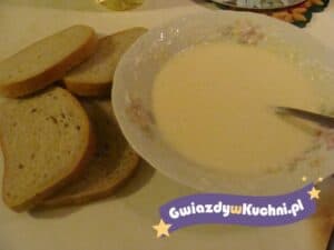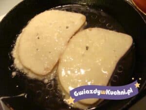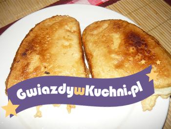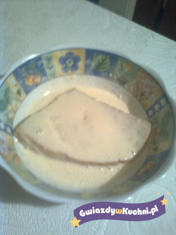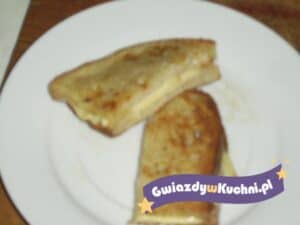Kromki chleba zanurzać dobrze w cieście, i smażyć na dobrze rozgrzanym tłuszczu, z obu stron na rumiano.
