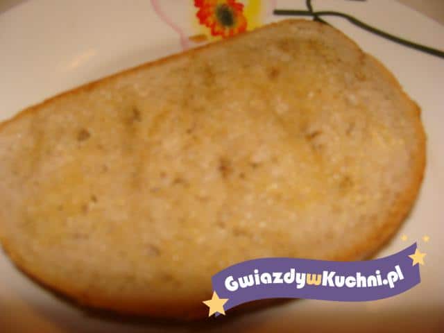 Chleb smarujemy masłem i posypujemy czosnkiem. Pieczemy na grillu po 15 minut z każdej strony.