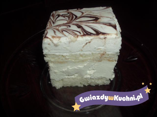 Układamy pierwszy blat i smarujemy go połową dżemu agrestowego /może być inny dżem ale o kwaskowym smaku/. Następnie smarujemy połową masy, przykrywamy drugim blatem biszkoptowym, smarujemy pozostałym dżemem i smarujemy resztą masy. Dowolnie ozdabiamy.