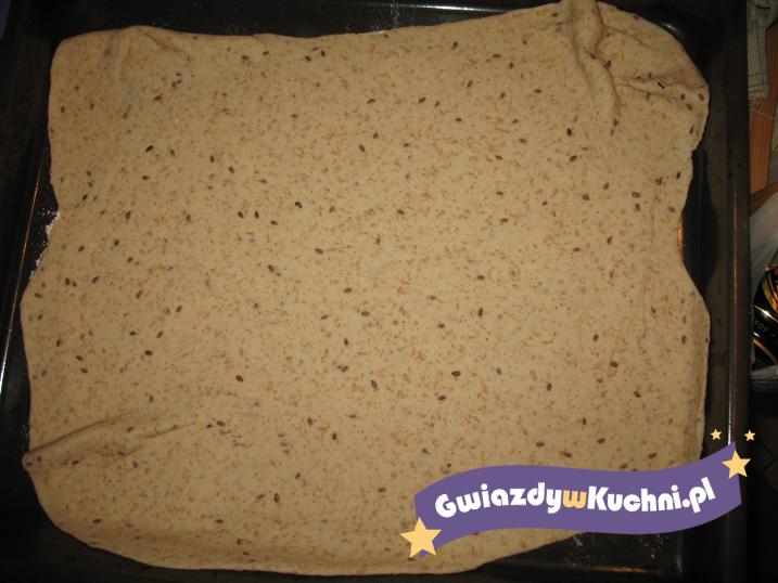 Drożdże rozpuszczamy w cieplej wodzie z cukrem. Kiedy zaczną rosnąc łączymy wszystkie składniki i wrabiamy gładkie ciasto.