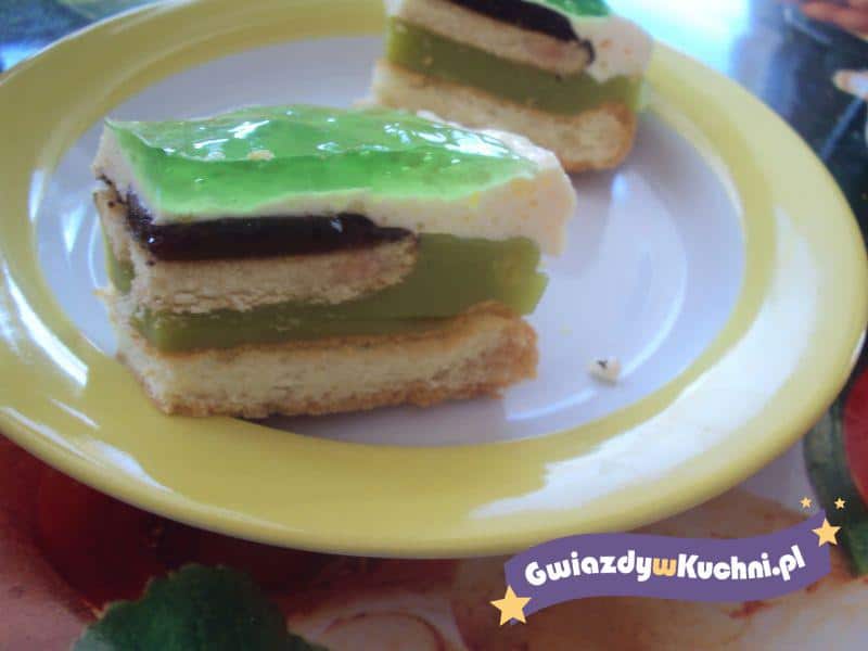 Polewamy pozostałymi tężejącymi galaretkami przyrządzonymi wg. przepisu na opakowaniu.