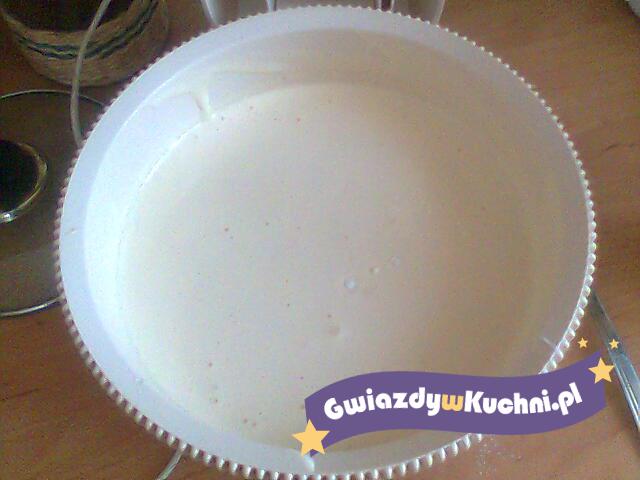 4. Białe ciasto wyłożyć na blaszkę, następnie wykładać porcjami ciasto z kakaem. Na ciasto można położyć owoce.