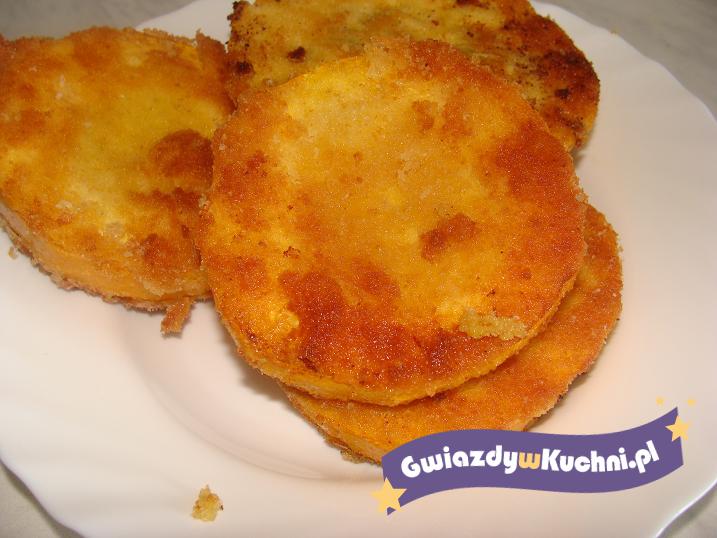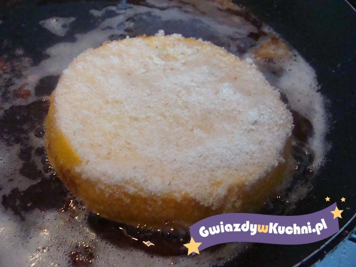 Nieobrane cukinie pokroić na talarki. Jajko roztrzepać. Cukinie posolić i posypać pieprzem, a następnie panierować w mące, jajku i tartej bułce. Smażyć całość na tłuszczu z obu stron.