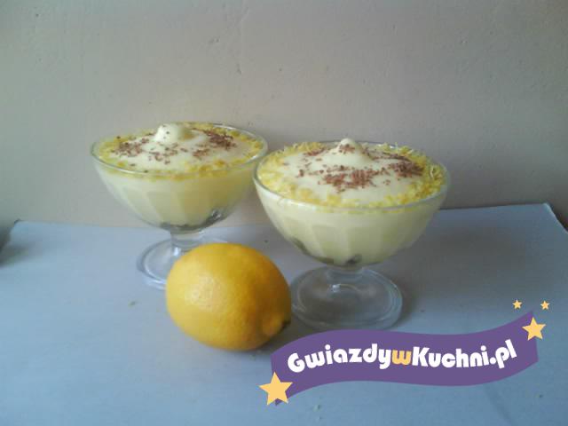 Z jednej umytej cytryny zetrzeć skórkę. Z trzech cytryn wycisnąć sok. Oddzielić żółtka od białek. Żółtka utrzeć z cukrem i skórką z cytryny. Sok z cytryny mocno podgrzać, dodać żelatynę, dokładnie wymieszać, odstawić do wystudzenia. Białka ubić ze szczyptą soli, połączyć z żółtkami i z sokiem z cytryny, dokładnie wymieszać. Krem rozłożyć do pucharków, schłodzić, a następnie posypać skórką z cytryny i startą czekoladą.