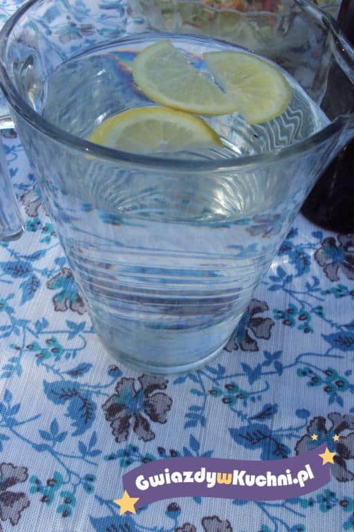 Wodę mineralną mocno schładzamy w zamrażarce. Cytryny sparzamy gorącą wodą. Z dwóch cytryn wyciskamy sok. A resztę cytryn kroimy w krążki. Wodę wyciągamy po godzince, dodajemy cukier, wyciśnięty sok, mieszamy. Przelewamy cytrynową wodę do dzbanka, wkładamy na wierzch pokrojone cytryny.