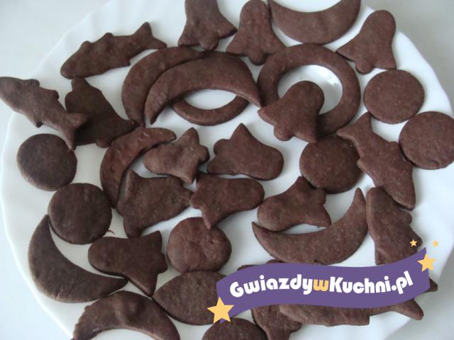 Ze wszystkich składników należy zagnieść ciasto (jeśli będzie za mało masła, można dodać jeszcze 1 łyżkę). Ciasto po zagnieceniu należy rozwałkować i wycinać z niego kształty ciastek. Na wyłożonej papierem do pieczenia blasze należy ułożyć ciastka i piec je 15- 20 minut w piekarniku nagrzanym do 180 stopni.