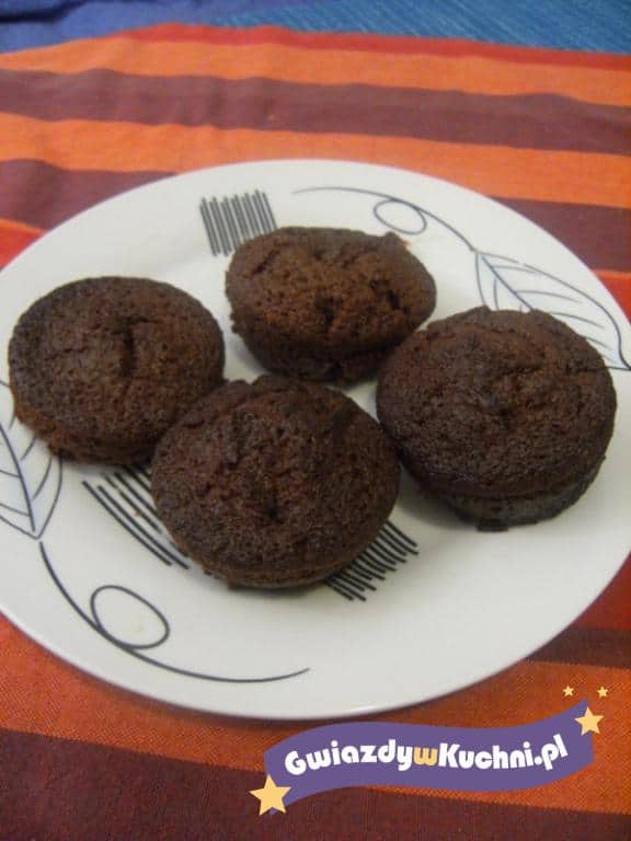 Do jednej miski wsypujemy wszystkie suche składniki i mieszamy. Do drugiej miski wlewamy wszystkie mokre składniki i mieszamy. Następnie do suchych składników dodajemy mokre i mieszamy wszystko łyżką (nie miksujemy). Tak przygotowane ciasto wlewamy do foremek i pieczemy ok 20 min w piekarniku nagrzanym do ok 200 stopni.
