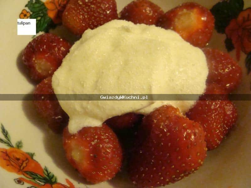 Umyte truskawki odsączyć, usunąć szypułki, włożyć na salaterkę, oddzielnie podać cukier i śmietankę.