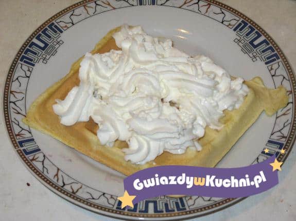 Całe jajka po wyparzeniu należy dokładnie utrzeć z białym cukrem, następnie wsypać do nich mąkę, którą wcześniej należy wymieszać z proszkiem do pieczenia i cukrem waniliowym. Później dodajemy mleko i olej mieszając do uzyskania jednolitej masy. Pieczemy w gofrownicy.