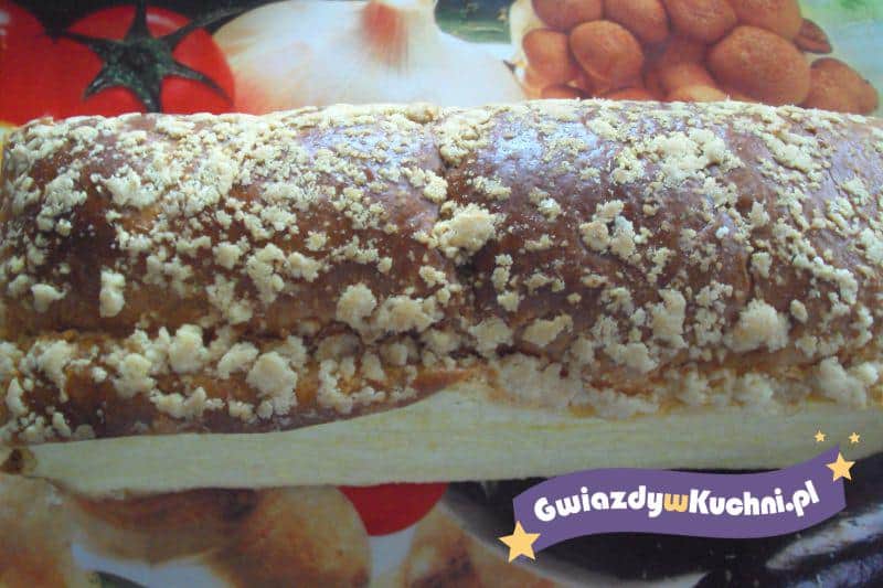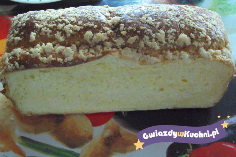 Robienie tego ciasta polega na dokładniej kolejności wkładania składników do miski. Na same dno wsypujemy przesianą mąkę, wbijamy jajka, dodajemy cukier, cukier waniliowy. Zostawiamy 1/2mleka a resztę wlewamy do miski. W 1/2szklanki mleka rozrabiamy drożdże, wlewamy do miski. Na sam koniec wlewamy oliwę, składniki nie mieszamy, przykrywamy ściereczką i pozostawiamy na noc w ciepłym miejscu. Rano mieszamy składniki, ciasto przelewamy do wąskiej blaszki. Z margaryny i 1/2szklanki mąki robimy kruszonkę, posypujemy po cieście. Pieczemy w 200 stopniach 55 minut.