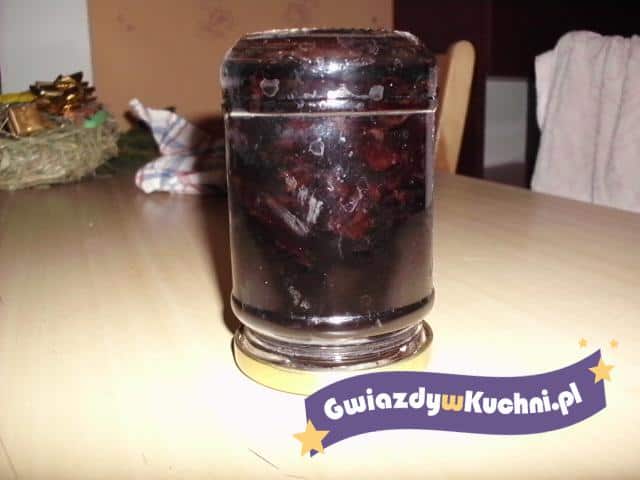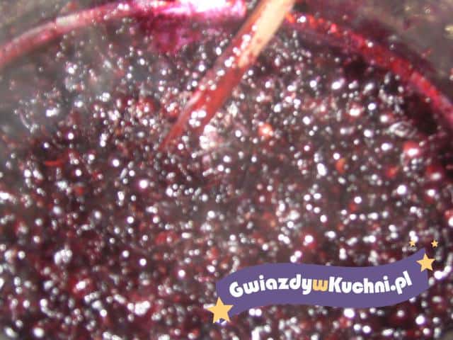 Owoce czarnej porzeczki, umyć i zasypać 1 szkl cukru.