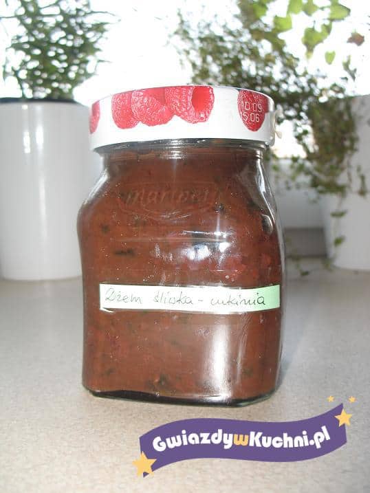 Cukinię kroimy w kostkę. Śliwki pozbawiamy pestek, zasypujemy cukrem, przykrywamy, gotujemy tak chwilę aż owoce puszczą sok, wtedy zdejmujemy przykrywkę . Gotujemy do uzyskania odpowiedniej konsystencji. Przekładamy do słoików. Pasteryzujemy 15 min.
