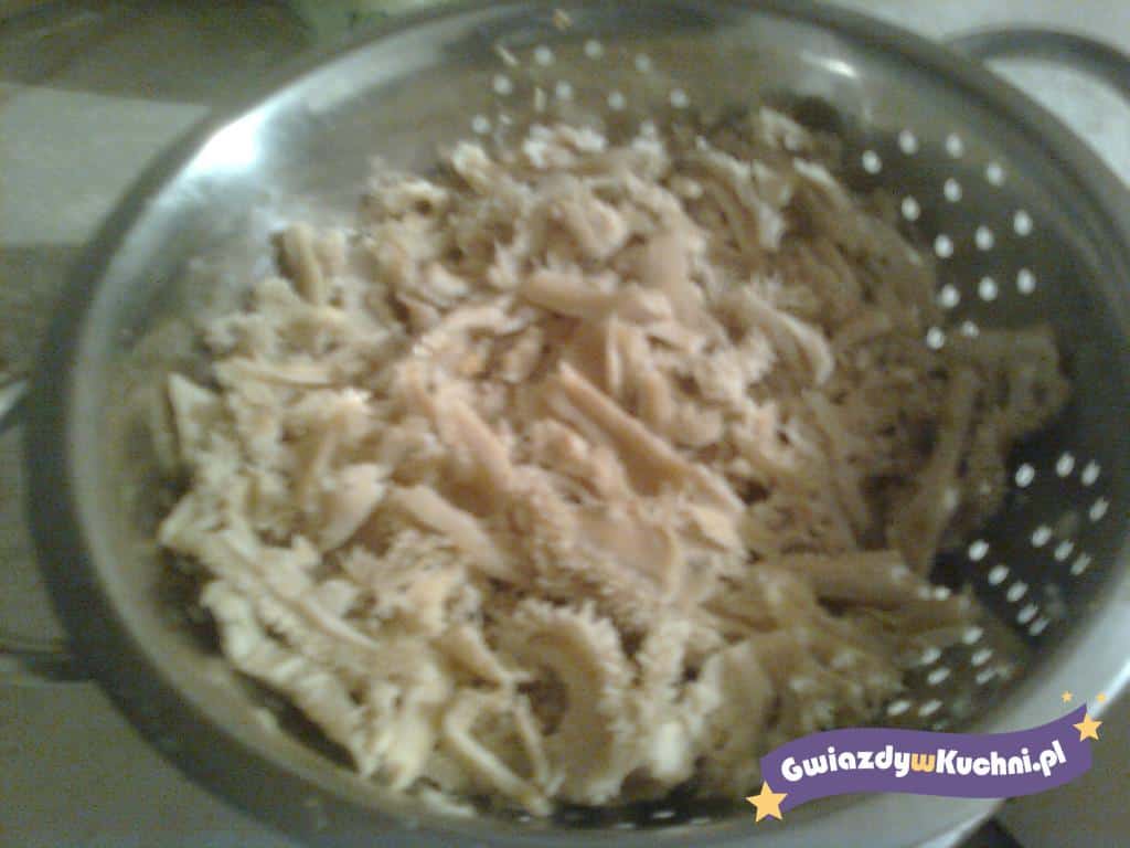 Mięso ze szpondra oddzielamy od kości i kroimy w paski.