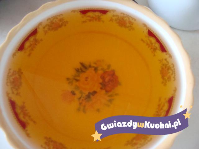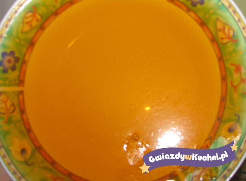 Wodę zagotować, rozrobić żelatynę i dodać to do soku, mieszać szybko żeby grudek nie było, rozlać.