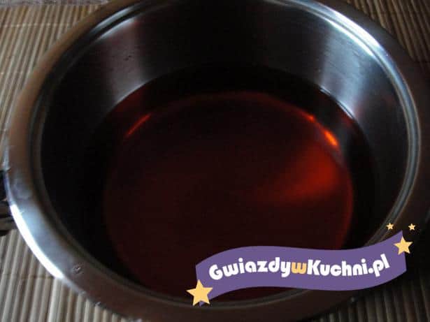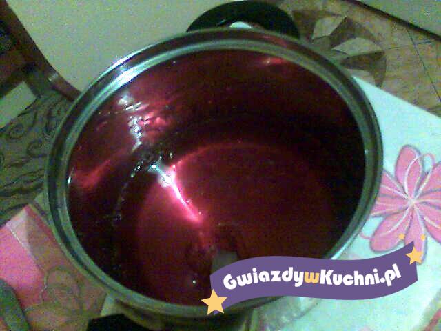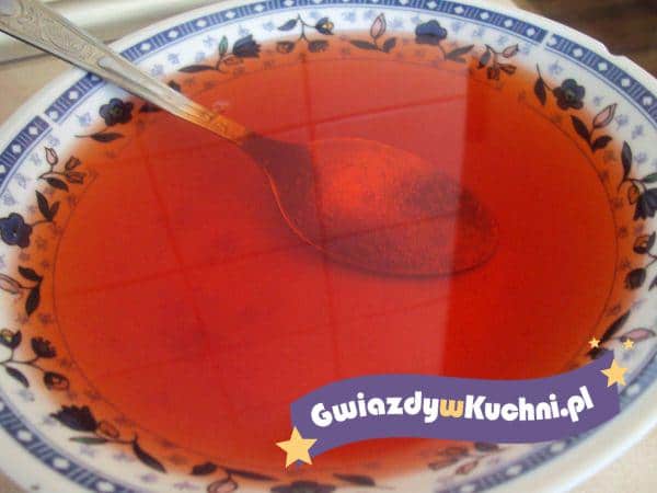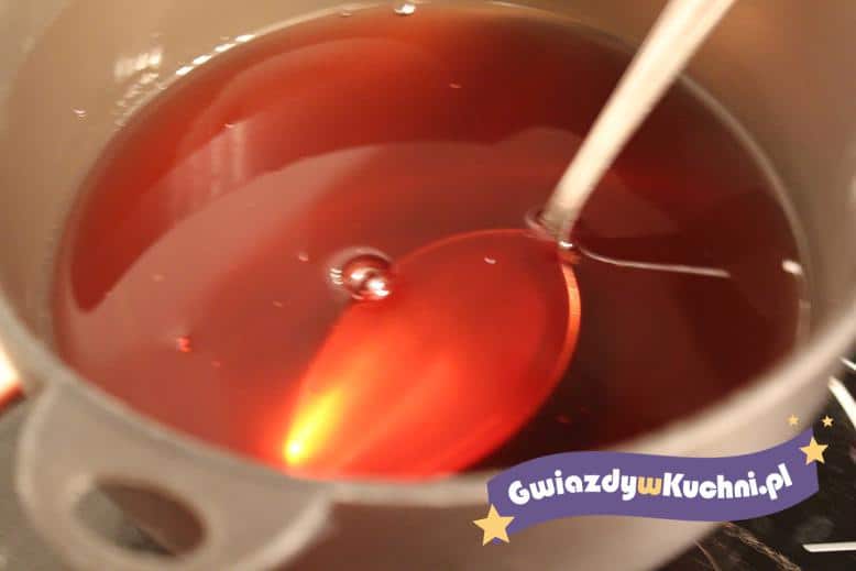 We wrzątku rozpuścić żelatynę, dodać sok, wymieszać. Schłodzić.