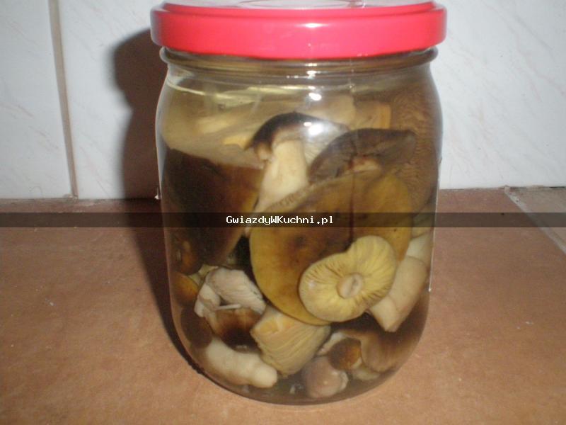 Grzyby należy dokładnie przebrać, następnie wymoczyć w zimnej wodzie i umyć. Moczyć mogą się nawet przez noc. Z wody, octu, soli i cukru należy zagotować zalewę. Grzybki należy ułożyć w słoikach do 2/3 wysokości i zalać gorącą zalewą. Od razu zakręcać. Odstawić w chłodne miejsce bez pasteryzowania.
