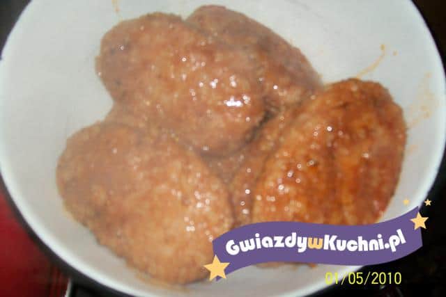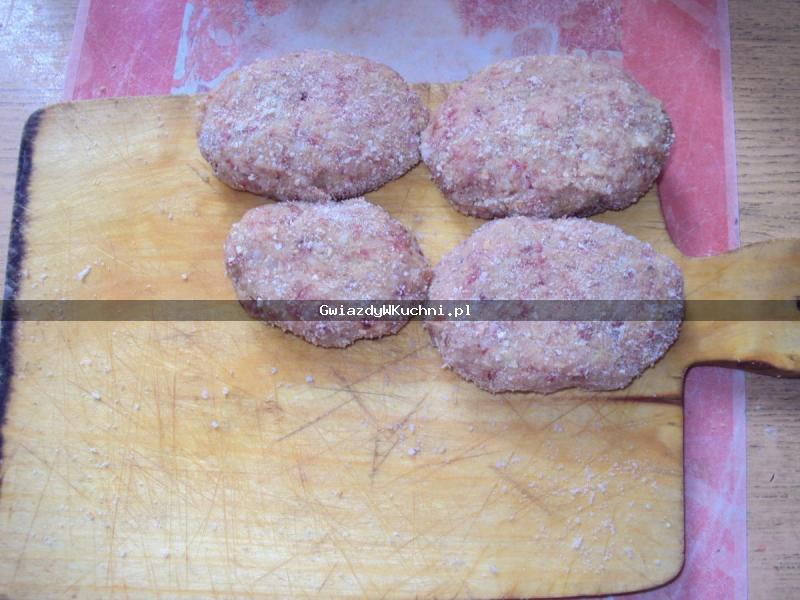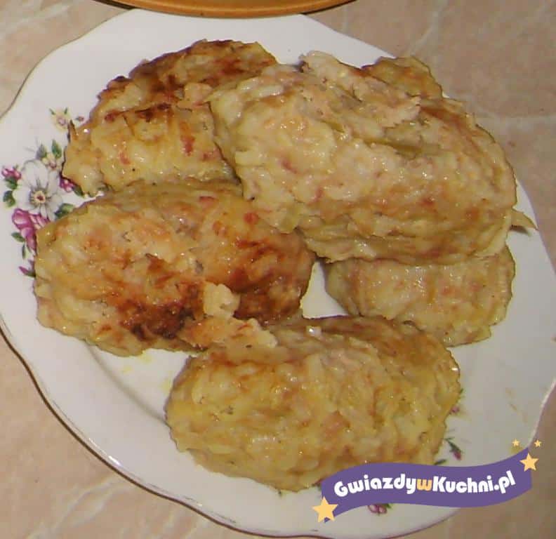 Mięso doprawiamy do smaku solą i pieprzem. Kapustę szatkujemy. Dodajemy do kapusty ugotowany ryż i mieszamy ze sobą. Nadziewamy ryż pomieszany z kapustą w środek mięsa mielonego. Smażyć na złoty kolor.