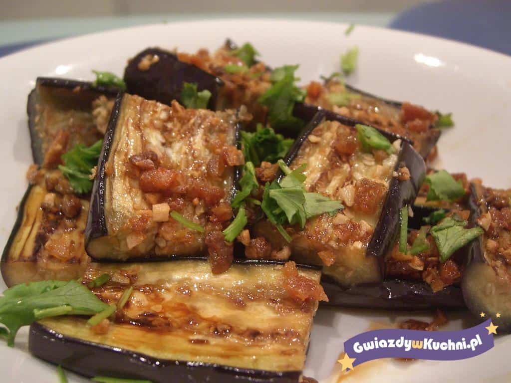 Wspaniały smak bakłażana podkreślony przez czosnek i chrupiący boczek.