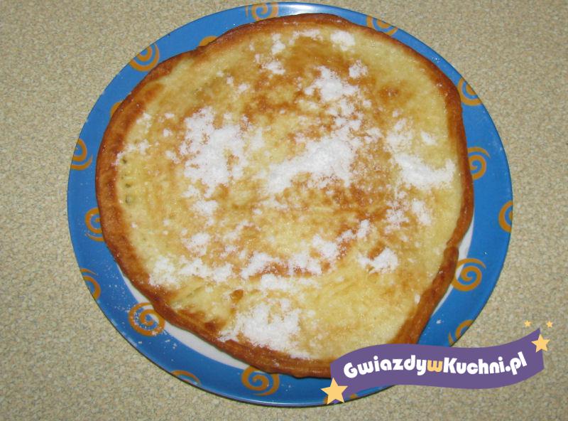 Wszystkie składniki dokładnie rozmieszać. Wylać ciasto na rozgrzany tłuszcz na jeden wielki placek. Rozsmarować na całej patelni pic z obu stron. Jest puszysty i pyszny.