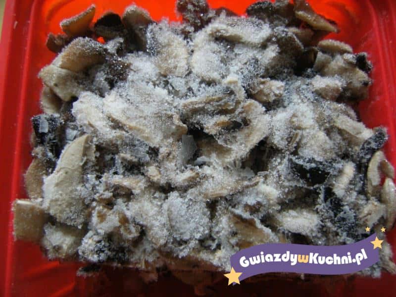 oczyszczone grzyby (kapelusze) na ok. 5 min. Wyjąć, przestudzić, położyć na tackę i włożyć do zamrażarki na 1 godz. Potem przełożyć grzyby do woreczków lub specjalnych plastikowych pojemników spożywczych