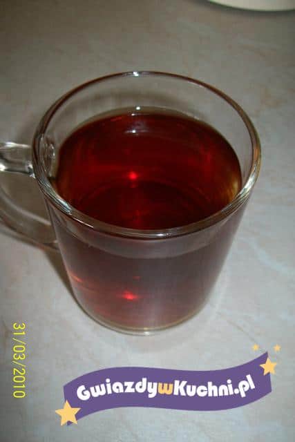 Herbatę zaparzamy i słodzimy sokiem. Następnie dodajemy wódkę.