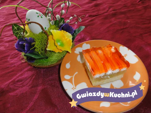 Galaretkę truskawkową rozpuszczamy w niewielkiej ilości gorącej wody i odstawiamy do wystygnięcia. Gdy kremówka będzie sztywna możemy wylewać na nią galaretkę, używając do tego łyżki. Ciasto odstawiamy do momentu, gdy galaretka całkowicie zastygnie.