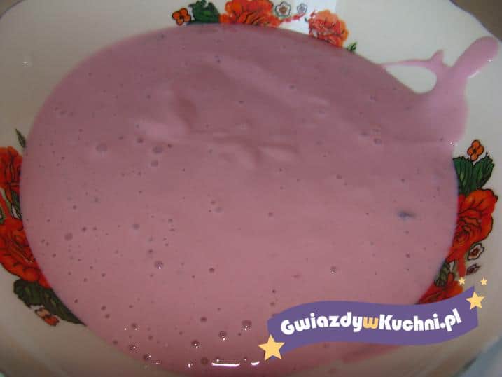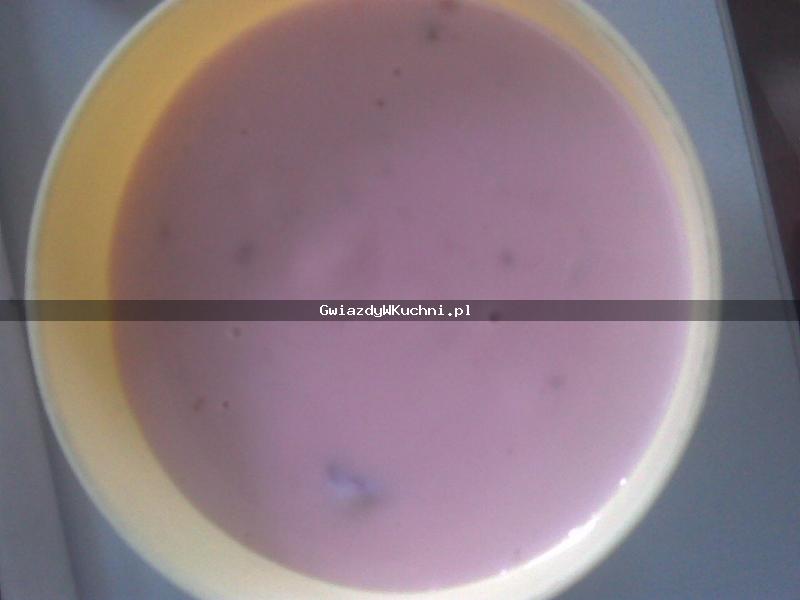 Jagody miksujemy dodajemy cukier i jogurty. Całość doprowadzamy do jednolitego koloru. Wstawiamy do lodówki na 2 godziny.