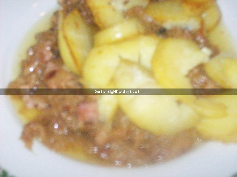 Ziemniaki obieramy, płuczemy i kroimy w plastry.