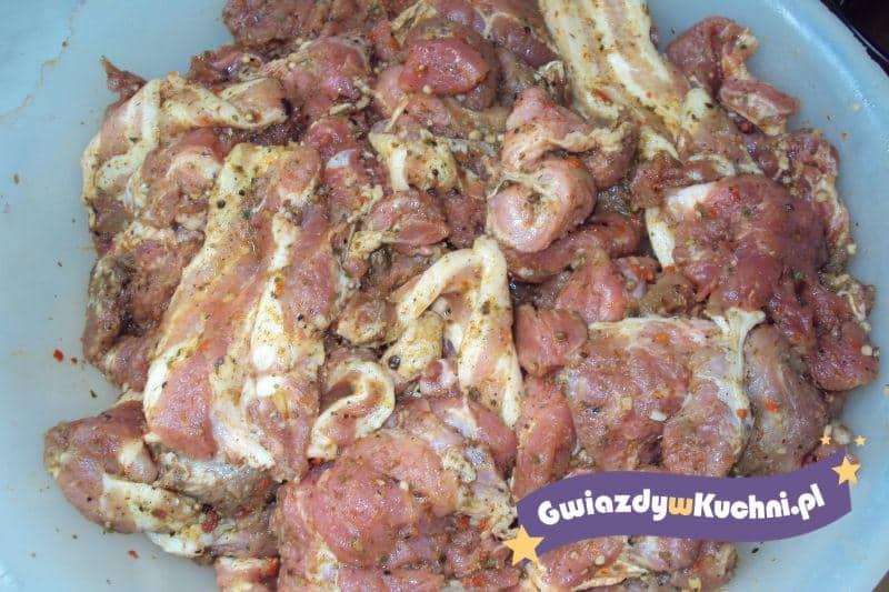 Wszystkie przyprawy mieszamy ze sobą. Karkówkę myjemy,kroimy ją na paski o grubości 1 cm. Pokrojoną karkówkę posypujemy przyprawami, odstawiamy w misce do lodówki na 10 godzin. Po 10 godzinkach pieczemy na złoty kolor na grillu. Smacznego.