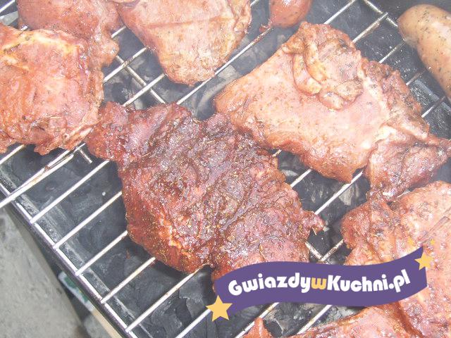 Karkówkę kroimy w plasterki. Każdy kawałek taczamy w ziołach. Pieczemy na rozgrzanym grillu 15 minut z każdej strony polewając piwem.