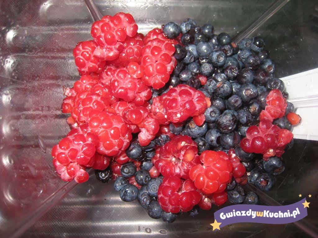 Jagody umyć dokładnie, owoce przełożyć do blendera, dodać jogurt naturalny i zmiksować . Schłodzić w lodówce.