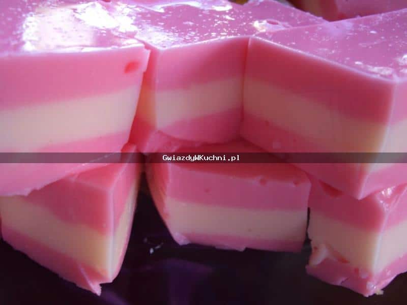 Kefir dzielimy na trzy równe części. Galaretki rozpuszczamy każdą osobno w szklance wody. Kefir 300 ml miksujemy na najwyższych obrotach i dodajemy tężejącą galaretkę. I tak samo miksujemy z pozostałością. Warstwami wylewamy do tortownicy. Wstawiamy na 2 godzinki do lodówki.