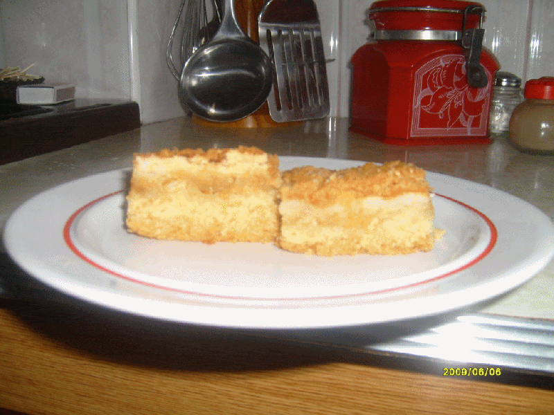 Wcześniej przygotowane ciasto wykładamy do formy i pieczemy ok. 30 minut w temp. 180*C. Po upieczeniu równomiernie rozkładamy masę kokosową i zapiekamy w piekarniku na złoty kolor.