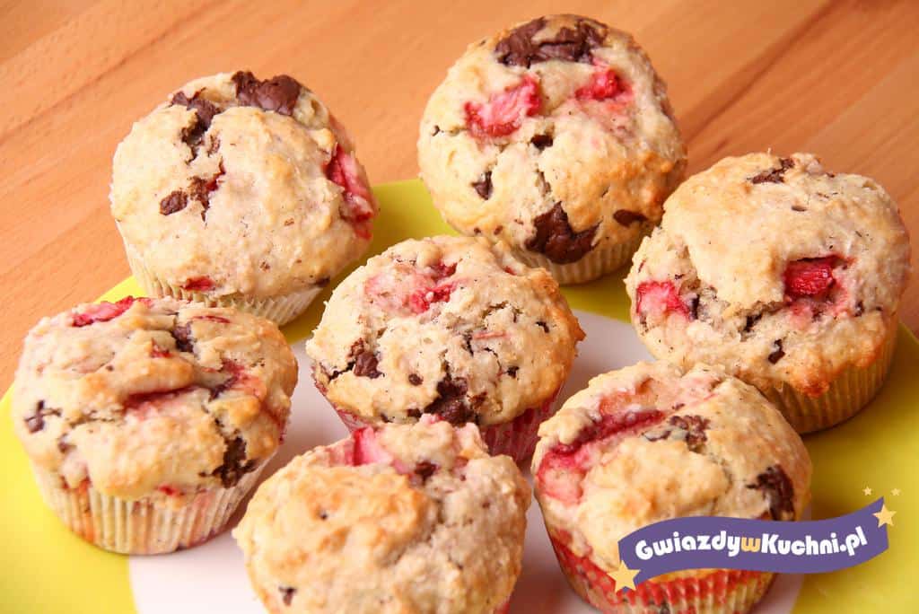 Kokosowo-truskawkowe muffiny z czekoladą to niesamowite babeczki, gdzie smak truskawek miesza się z gorzka czekoladą, oraz z wiórkami kokosowymi.