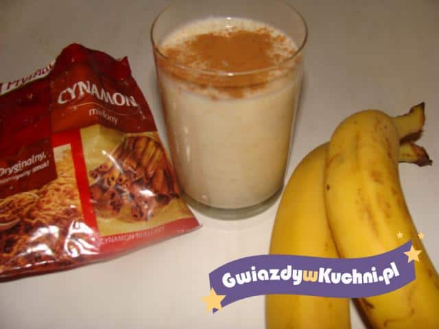 Banany należy obrać ze skórki, wrzucić do miseczki, dodać do nich jogurt naturalny oraz cukier puder, wszystko dokładnie zmiksować i od razu przelać do szklanki. Koktajl należy podawać posypany cynamonem.