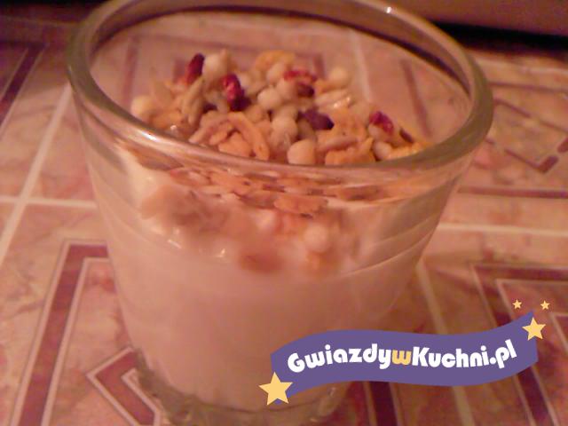 Koktajl rozlać do szklanek i posypać muesli.