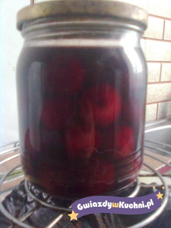 Wodę zagotować, dodać wcześniej umyte wiśnie i wydrylowane. Zagotować wodę z wiśniami następnie dodać cukier i cynamon. Rozmieszać. Gotowe.