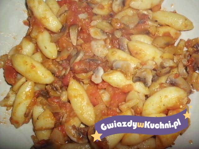 Doprawiamy do smaku vegetą, pieprzem i mieloną papryką. Do tak przygotowanego sosu wrzucamy kopytka i podgrzewamy 10 min. Możemy także wcześniej przygotowane kopytka najpierw podsmażyć i dopiero wtedy dodać do nich sos warzywny.