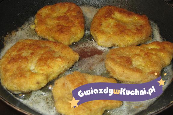 Smażyć na dobrze rozgrzanym tłuszczu, z obydwu stron na złoty kolor.