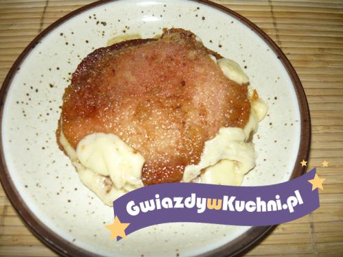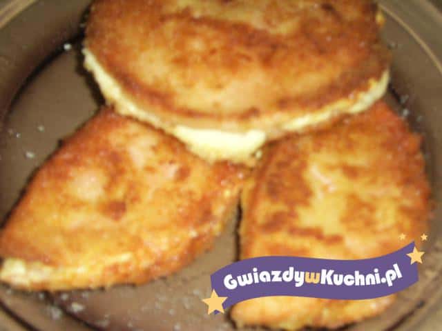 Ostrożnie maczamy kotlet w jajku i tartej bułce, smażymy na rozgrzanym tłuszczu do roztopienia się sera.
