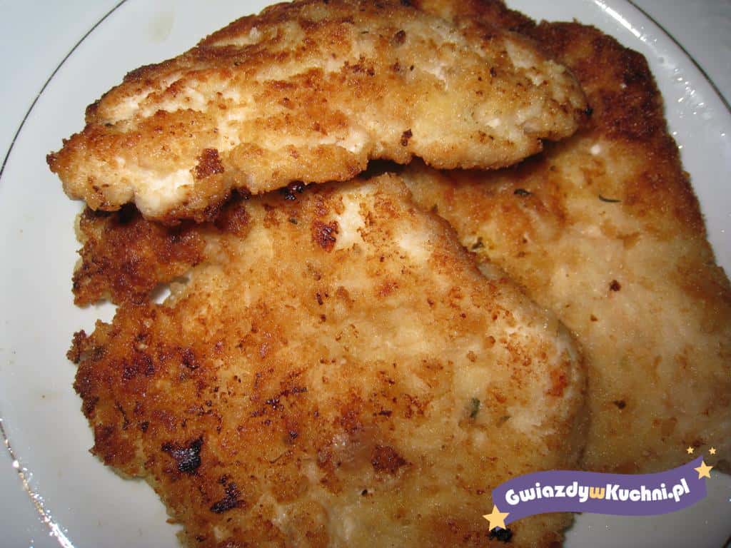Piersi z kurczaka myjemy, osuszamy papierowym ręcznikiem, rozbijamy lekko tłuczkiem, posypujemy, solą oraz pieprzem, odstawiamy naokoło 15 minut. Następnie na talerzu rozkłócamy widelcem jajko. rozbite kotlety obtaczamy w jajku, a następnie w bułce tartej i smażymy na oleju do momentu, aż będą miękkie. Podajemy z ziemniakami i surówką.