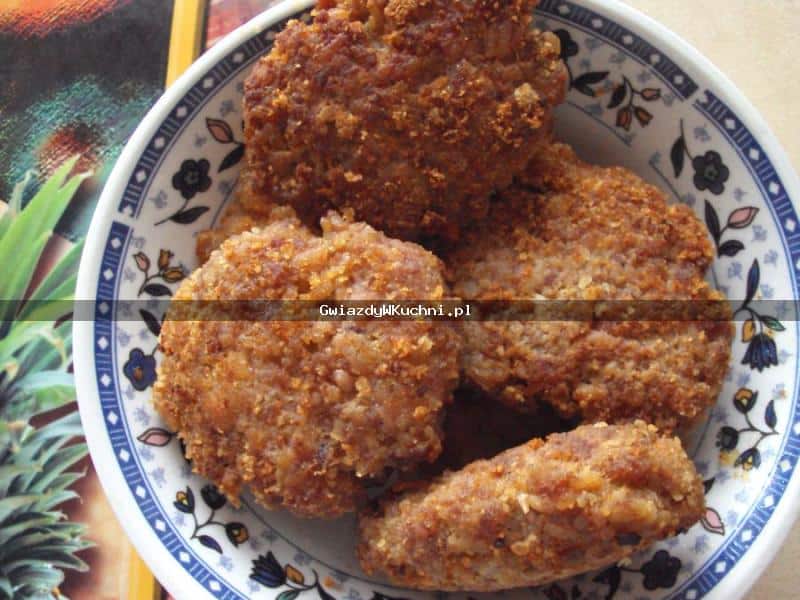 Pieczarki płuczemy, obieramy i kroimy na bardzo małe kawałeczki, bułkę moczymy w mleku i odciskamy. Natkę pietruszki siekamy. Cebulę oczyszczamy i siekamy w kostkę, po czym smażymy na odrobinie tłuszczu. Do mielonego mięsa dodajemy jaja, cebulę, pieczarki, mąkę, posiekaną pietruszkę, odsączoną bułkę i przyprawy. Wyrabiamy masę, a następnie formujemy kotlety, które panierujemy w tartej bułce i wrzucamy na rozgrzany tłuszcz. Smażymy niezależnie od wielkości około 5 minut z każdej strony. Podajemy z ryżem.